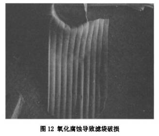 2)氧化腐蝕,主要指煙氣中氧氣、氮氧化物等對濾袋造成的腐蝕。尤其是在電廠燃煤鍋爐除塵器中采用的PPS濾袋由于氧化腐蝕造成損壞較多。