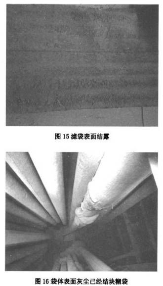 由于“四管爆裂”現象,導致水分進入除塵器,造成濾袋表面結露、糊袋現象。