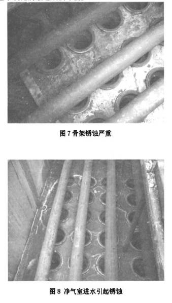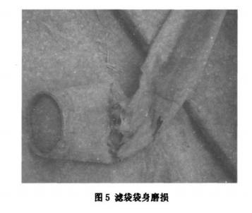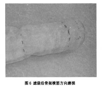 濾袋和骨架接觸部分長期由于脈沖噴吹導致接觸部分磨損,表現為很明顯的橫豎筋條方向磨損 痕跡。要注意濾袋和骨架的尺寸配合、骨架表面的光潔度等。