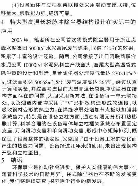 2大型高溫袋式除塵器在結構方面存在的問題